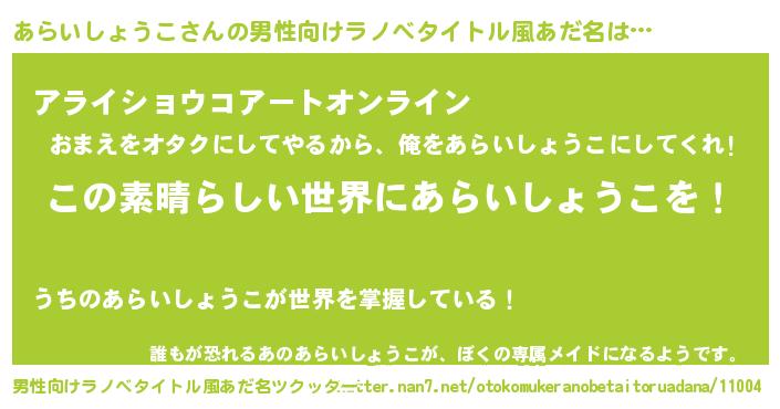 | 女子向けラノベタイトル風あだ名 | 『乙女ゲームの破滅フラグしかない悪役あらいしょうこに転生してしまった…』 |