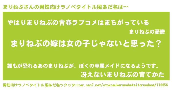 | 女子向けラノベタイトル風あだ名 | 『まりねぶ様がみてる』 |
