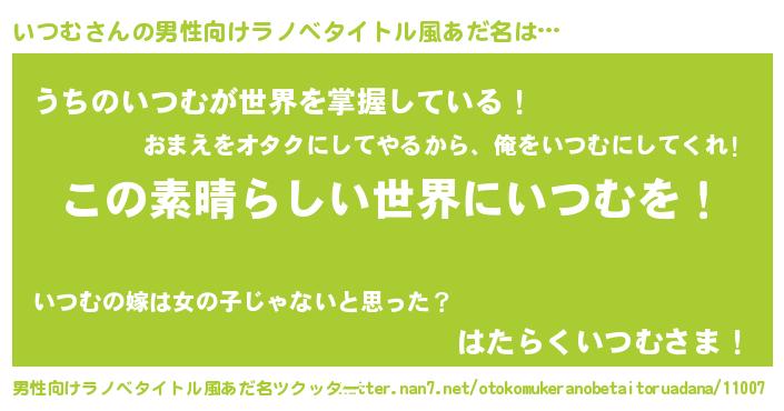 | 女子向けラノベタイトル風あだ名 | 『悪役いつむに転生したようですが、知った事ではありません』 |