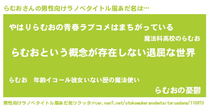 | 胡散臭い通販商品みたいなあだ名 | 『来世でも幸せになれる健康食品…その名も「らむお」』 |