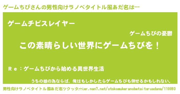 | 胡散臭い通販商品みたいなあだ名 | 『世界中を虜にした100年もののヴィンテージワイン…その名も「ゲームちび」』 |