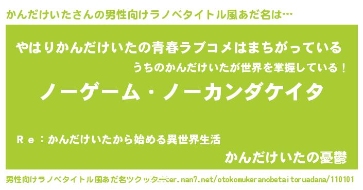 | 女子向けラノベタイトル風あだ名 | 『死神かんだけいたの再婚』 |