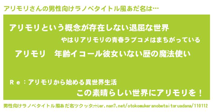 | 胡散臭い通販商品みたいなあだ名 | 『前代未聞の健康食品…その名も「アリモリ」』 |