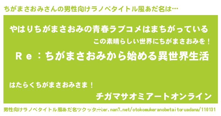 | 意味不明あだ名 | 『自称ちがまさおみ』 |