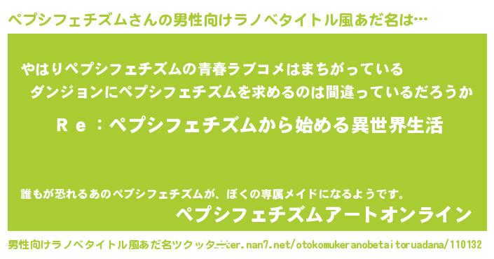 | 女子向けラノベタイトル風あだ名 | 『闇のペプシフェチズム』 |