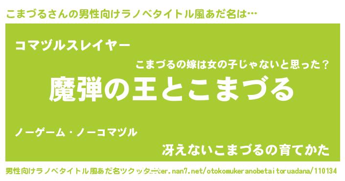 | 女子向けラノベタイトル風あだ名 | 『こまづるが死なない童話 林檎のこまづるの診療簿』 |