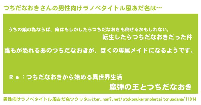 | 女子向けラノベタイトル風あだ名 | 『異世界でカフェつちだなおきを開店しました。』 |