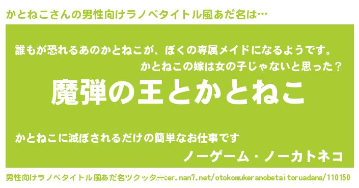 | 女子向けラノベタイトル風あだ名 | 『かとねこが死なない童話 林檎のかとねこの診療簿』 |