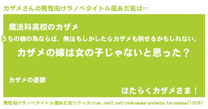| ヒーロー風カッコイイあだ名 | 『天弓騎士カザ』『ウルトラ戦士カザメ』 |