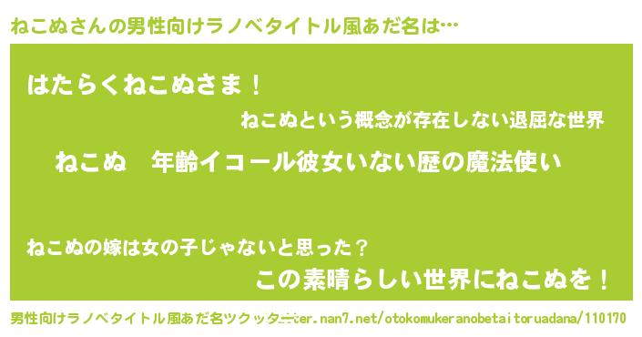 | 料理風あだ名 | 『ねこぬとほうれんそうの和風グラタン』 |