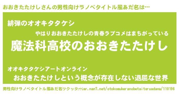 | 女子向けラノベタイトル風あだ名 | 『おおきたたけしアンティーク』 |