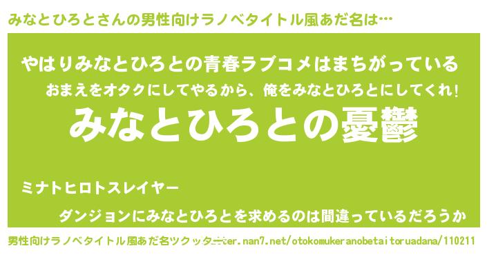 | 胡散臭い通販商品みたいなあだ名 | 『モテモテ間違いなし霊験あらたかなお札…その名も「みなとひろと」』 |