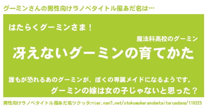 | ヘコむあだ名 | 『グーを』『グーミン(苦笑)』『豆乳』 |
