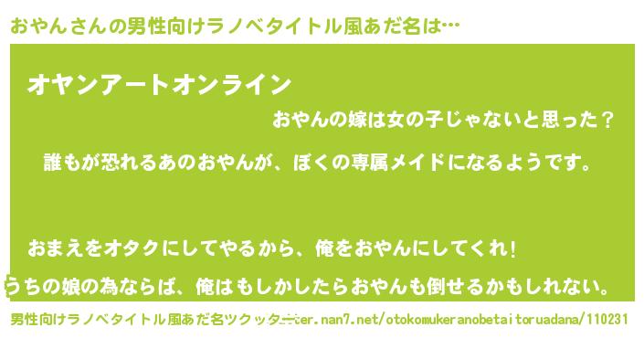 | 胡散臭い通販商品みたいなあだ名 | 『来世でも幸せになれる水素水…その名も「おやん」』 |