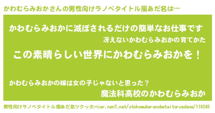 | 意味不明あだ名 | 『住所不定無職かわむらみおか(50歳)』 |