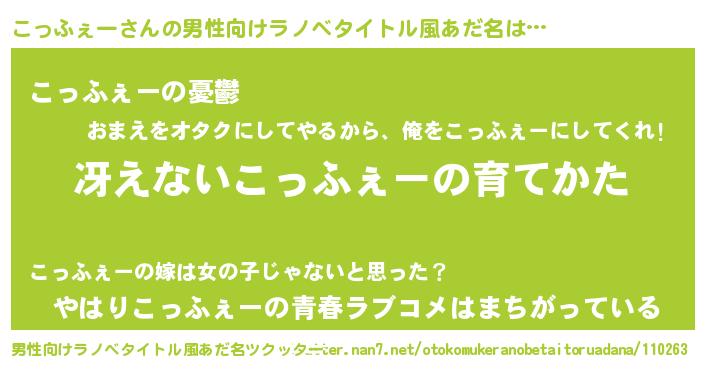 | 胡散臭い通販商品みたいなあだ名 | 『モテモテ間違いなし水晶球…その名も「こっふぇー」』 |