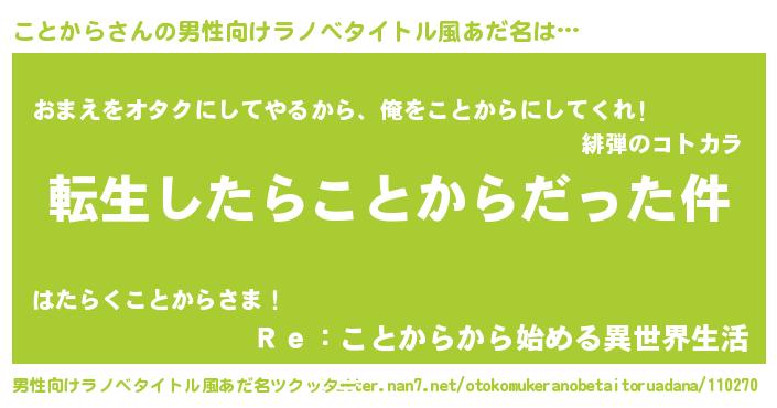 | 胡散臭い通販商品みたいなあだ名 | 『お金では代えられない隕石のかけら…その名も「ことから」』 |