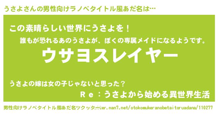 | ヒーロー風カッコイイあだ名 | 『仮面ウサダー』『究極戦士ウサヨ』 |