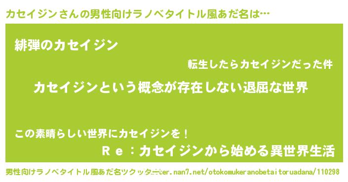 | 胡散臭い通販商品みたいなあだ名 | 『絶対に幸福をもたらす健康食品…その名も「カセイジン」』 |