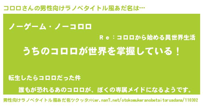 | ヘコむあだ名 | 『コロロ(爆)』『コロっふぃ~』 |