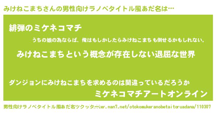 | 意味不明あだ名 | 『永久保存みけねこまち』 |