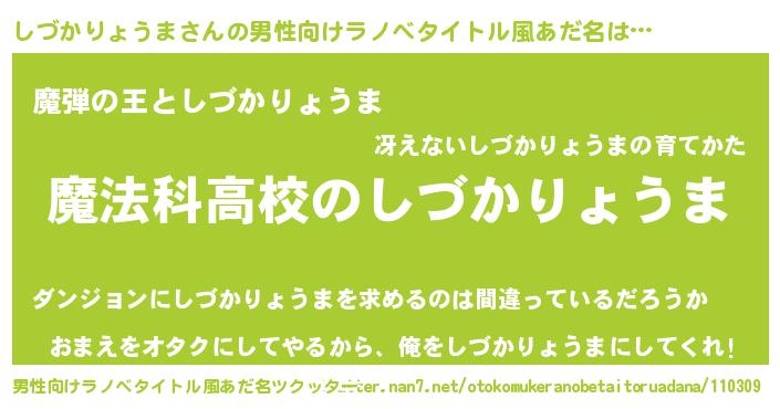 | 意味不明あだ名 | 『自称しづかりょうま』 |