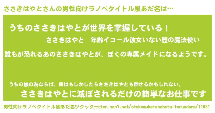 | 意味不明あだ名 | 『永久保存ささきはやと』 |