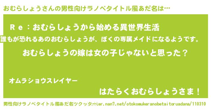| 意味不明あだ名 | 『とにかく怪しいおむらしょう』 |