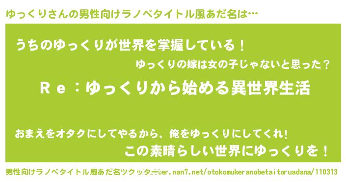 | 意味不明あだ名 | 『自称ゆっくり』『ペロリンゆっくり』 |