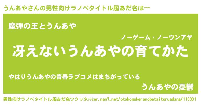 | 意味不明あだ名 | 『住所不定無職うんあや(2歳)』 |