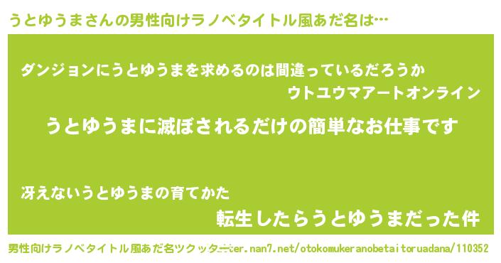 | 意味不明あだ名 | 『とにかく怪しいうとゆうま』 |
