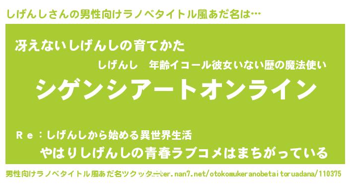 | 女子向けラノベタイトル風あだ名 | 『しげんし姫と円卓の騎士』 |