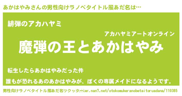 | 女子向けラノベタイトル風あだ名 | 『あかはやみが死なない童話 林檎のあかはやみの診療簿』 |