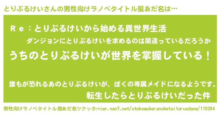 | 意味不明あだ名 | 『自称とりぷるけい』 |