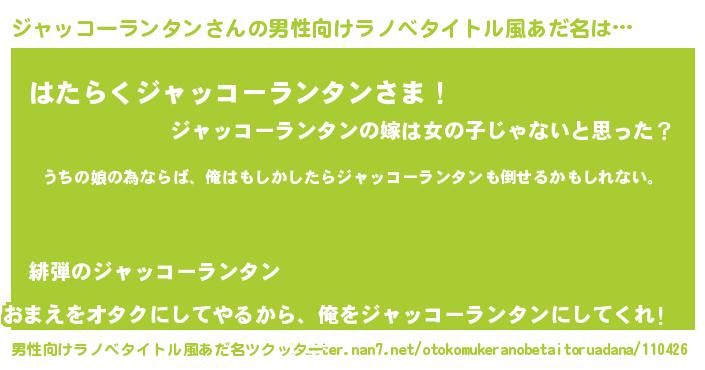 | 女子向けラノベタイトル風あだ名 | 『ジャッコーランタンの婚約者』 |