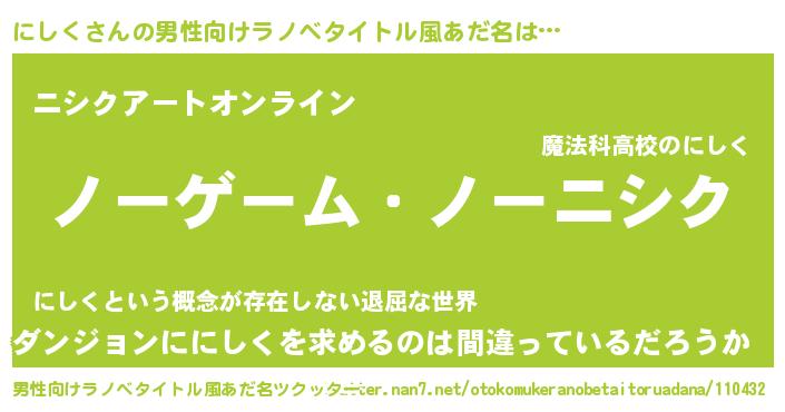 | 女子向けラノベタイトル風あだ名 | 『にしく恋絵巻』『にしく姫と円卓の騎士』 |