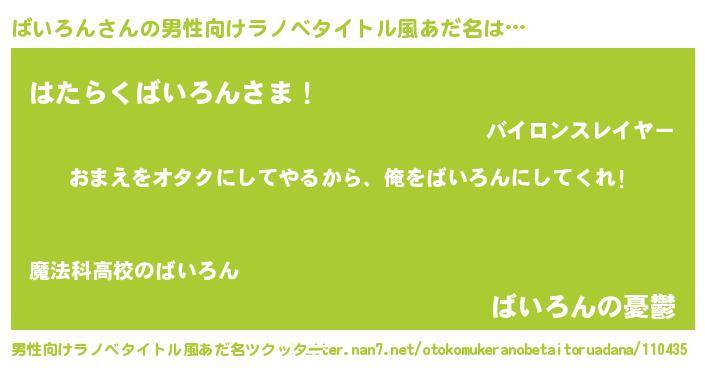 | 欧米人風あだ名 | 『ダニエルばいろん』『マイケルばいろん』 |
