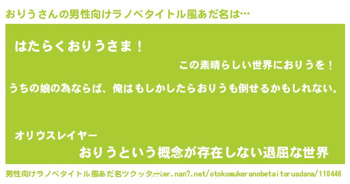 | ヘコむあだ名 | 『なまこ酢』『おりう(苦笑)』 |