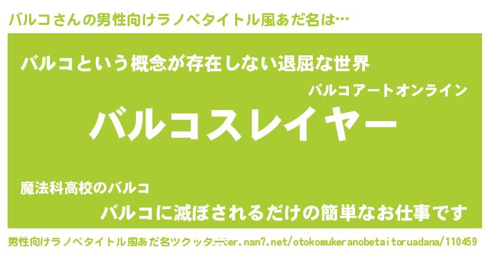 | 胡散臭い通販商品みたいなあだ名 | 『絶対に幸福をもたらす水素水…その名も「バルコ」』 |