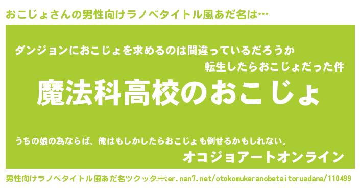 | 意味不明あだ名 | 『自称おこじょ』『ペロリンおこじょ』 |