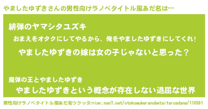 | 女子向けラノベタイトル風あだ名 | 『やましたゆずき様がみてる』 |