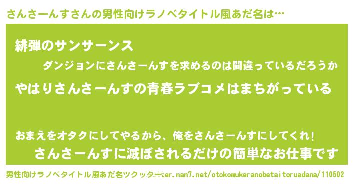 | 意味不明あだ名 | 『さんさーんすフォーエバー』 |