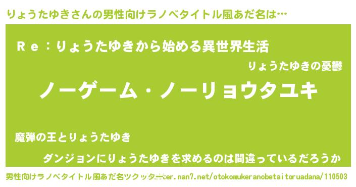 | ヒーロー風カッコイイあだ名 | 『愛の使者りょうたゆき』『魔戒騎士リョ』 |