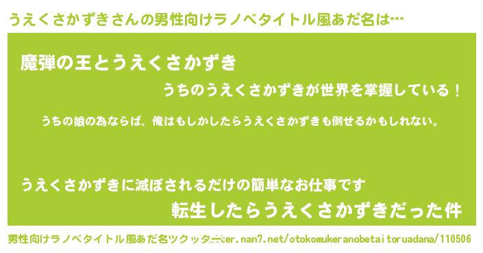 | 女子向けラノベタイトル風あだ名 | 『うえくさかずき伯爵の花嫁』 |