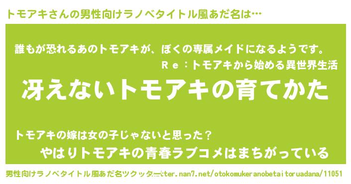 トモアキさんの男性向けラノベタイトル風あだ名をツクッター!