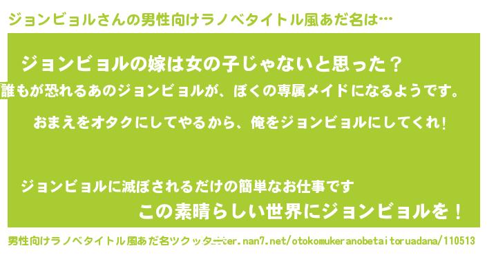 | ヘコむあだ名 | 『ジョを』『ジョンビョル(遠い目)』 |
