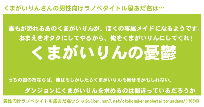 | 女子向けラノベタイトル風あだ名 | 『くまがいりん姫と円卓の騎士』 |