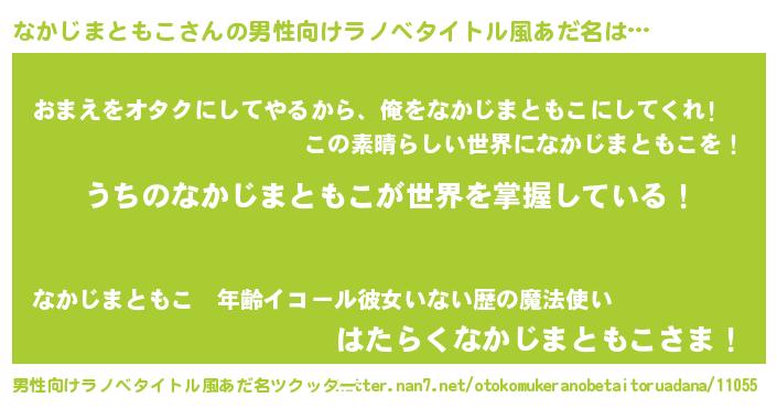| 女子向けラノベタイトル風あだ名 | 『男装なかじまともこの憂鬱な任務』 |