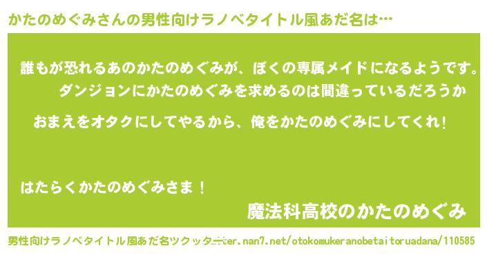 | ヘコむあだ名 | 『かたのめぐみ(笑)』『かたっ子』 |