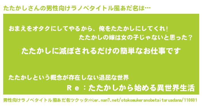 | ヒーロー風カッコイイあだ名 | 『慈愛の使者たたかし』『銀牙騎士タタ』 |